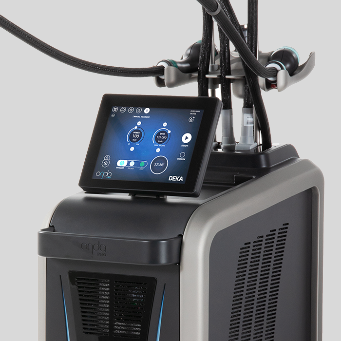 Coolwaves auf die Spitze treiben. Unerbittliche Evolution in der Körperformung. Onda PRO von DEKA maximiert die Wirksamkeit von Coolwaves® - speziellen Mikrowellen, die selektiv auf Fettzellen, schlaffe Haut und Cellulite abzielen, durch ein neues Handstück, das auf die Mikrozirkulation einwirkt.